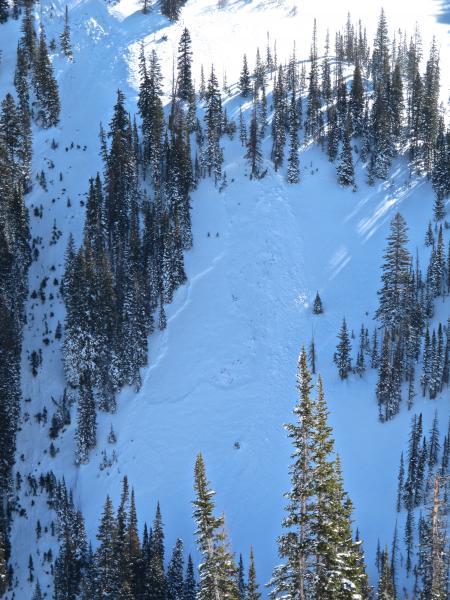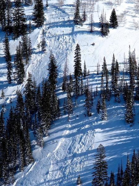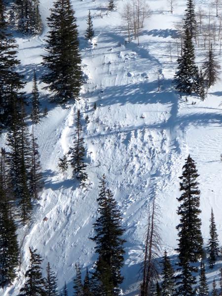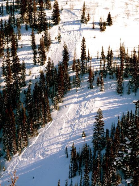 NW facing mid slope rollovers around 10,000-10,100 ft. running about 400-600 ft. to the valley bottom. These are 40+ degrees in steepness but nonetheless, keep on your toes!