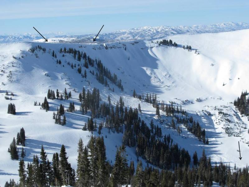 Releasing overnight as a result of increased southwest winds, this slide ran fast and far, overunning flat benches and natural terrain features.