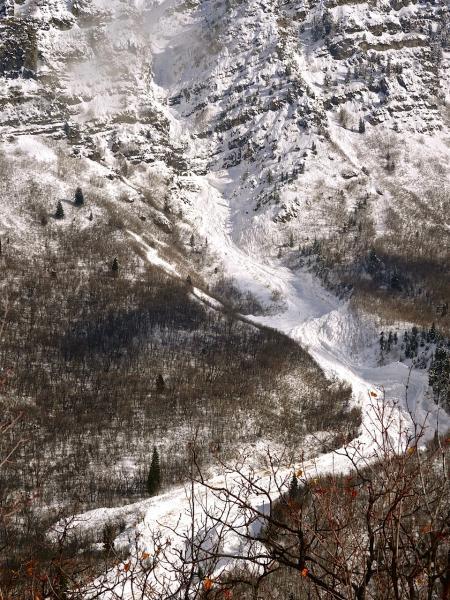 Here are some excellent photos of large, natural avalanches that descended down the west side of Cascade Ridge probably on Sunday. These photos were sent to KSL.com by Matt Galland. They probably descended over 4,500 vertical feet.