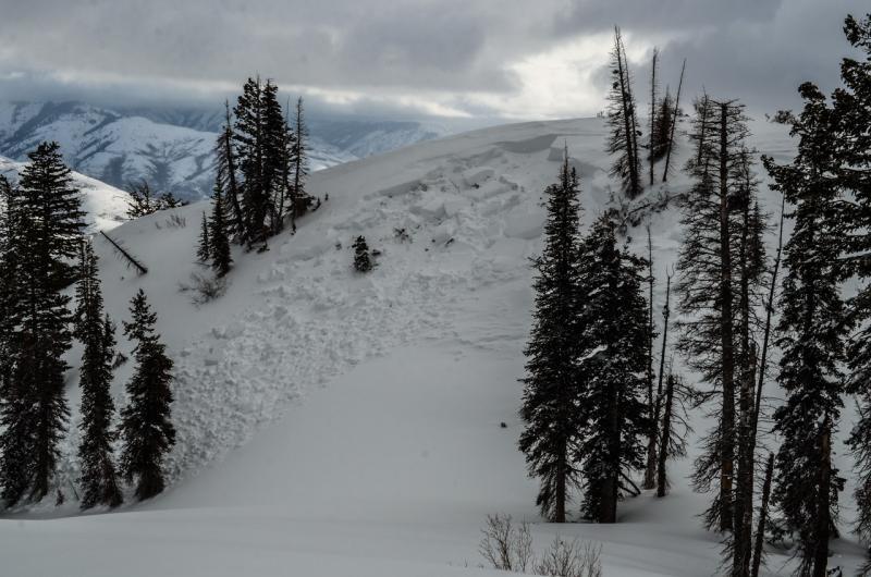 So, I'm honestly not exactly sure what is going on with this slide. Bill Brandt reported the slide just a few hundred feet to the East of this slide, on nearly the same aspect, elevation and slope angle. I'm not sure if this "West' slide was sympathetic to the "East" slide, or if it happened independently.