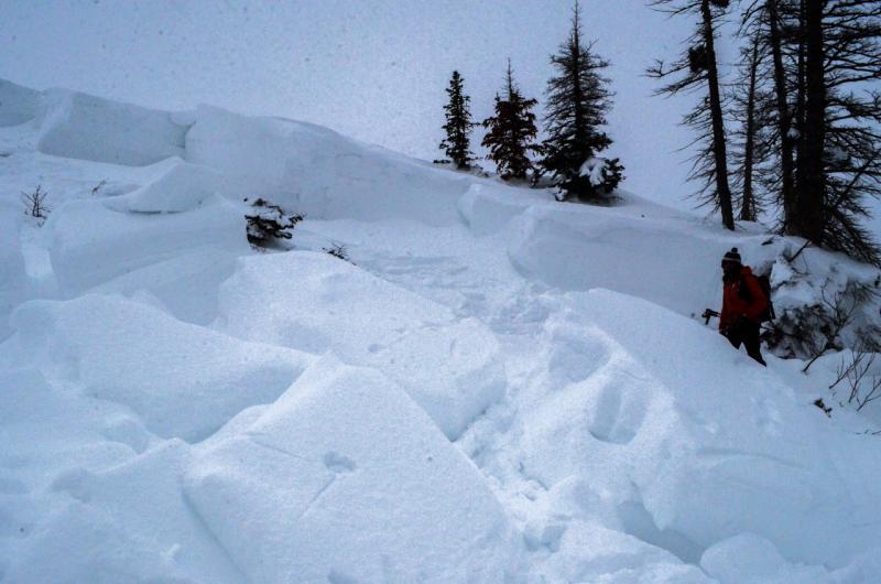 Regardless of the trigger, the "West" slide is significant just due to how rare it is for this slope to slide. The 1F hard slab pulled out to the ground, leaving huge refrigerator sized chunks littered across the slope. This slope is just a hundred yards or so due south of the weather station on a northerly, treed slope.