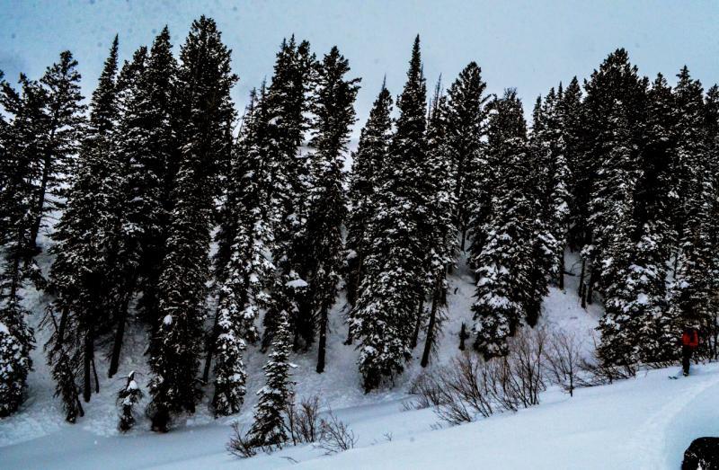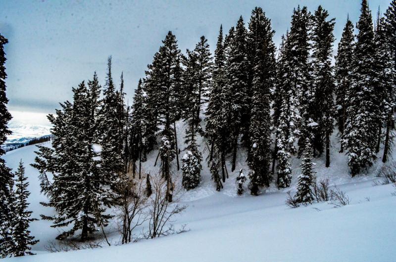 I thought it was somewhat interesting that these two slides did not connect together. The snow left in between them is of the same aspect and slope angle. The only thing anchoring this piece of snow in place may be the closely spaced trees.