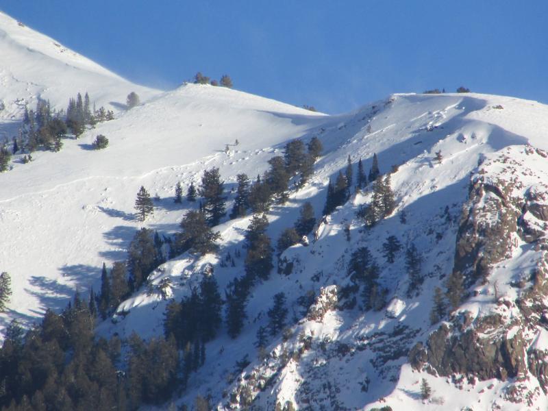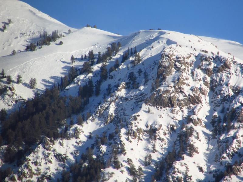 2 distinct Crown lines likely 3'+ crowns and 750'-1000'+ vertical run on each if they ran to the terminus, terrain factors include large cliffs and trees N-WS/WL-R4-D3-G