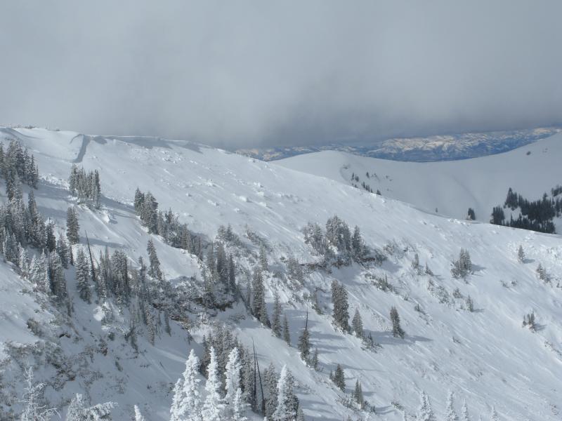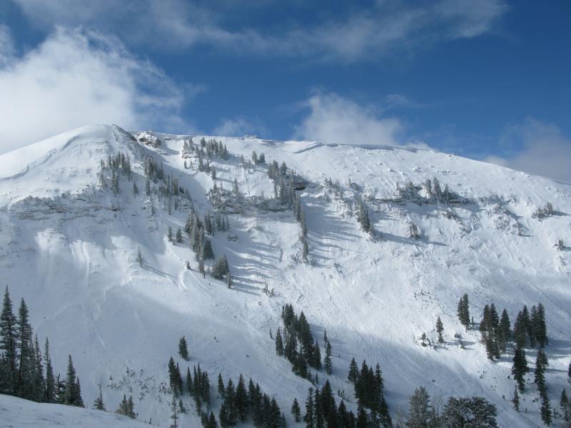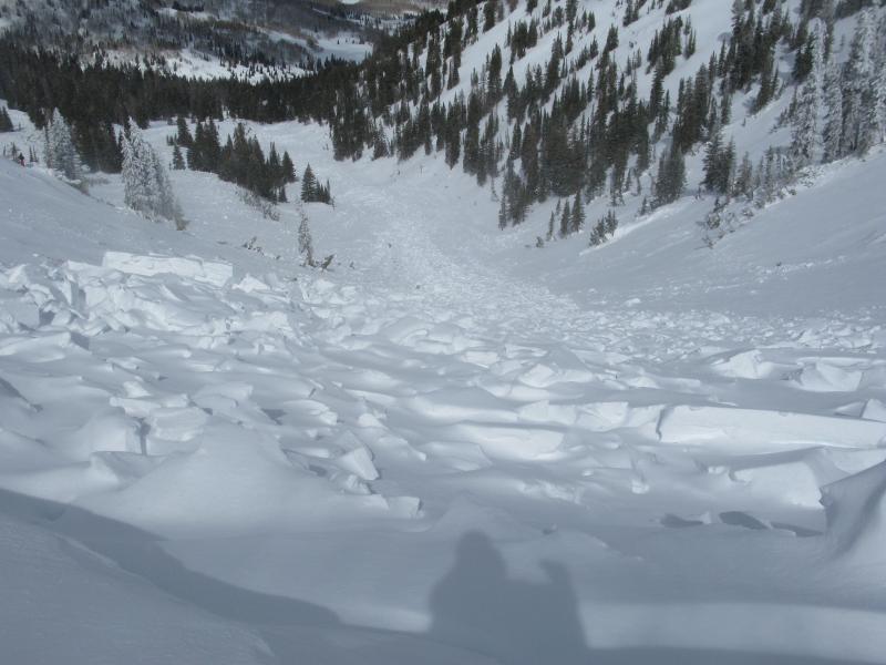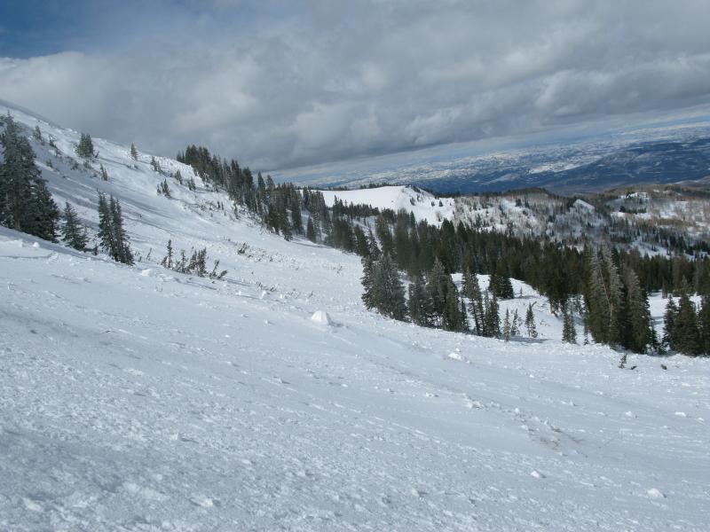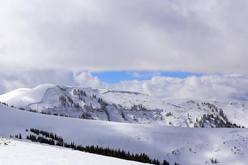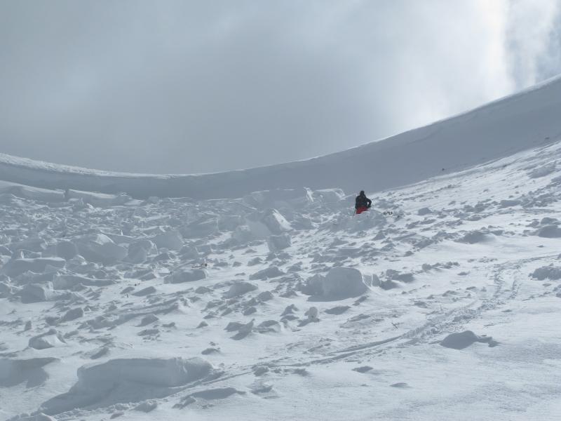 Quite possibly the largest slide yet this season. Ten feet deep and over a 1/2 mile wide this slide encompasses the entire drainage with every aspect on the north half of the compass getting in on the act.