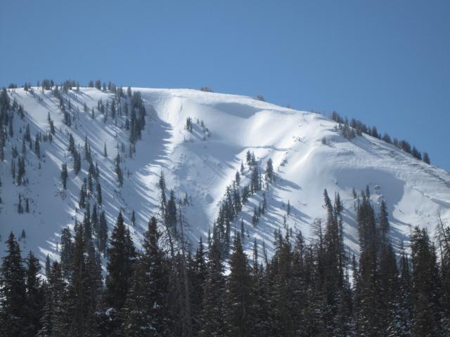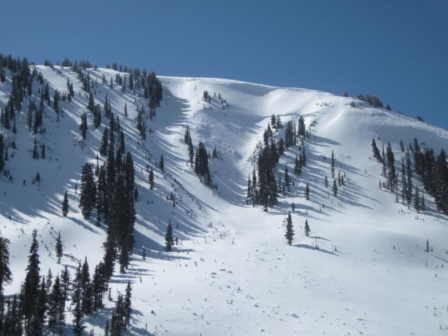Looks like a natural avalanche that likely happened sometime Saturday during the strong west and southwest winds.  Weak and thin snow coverage around this steep and rocky terrain was overloaded by the strong winds.