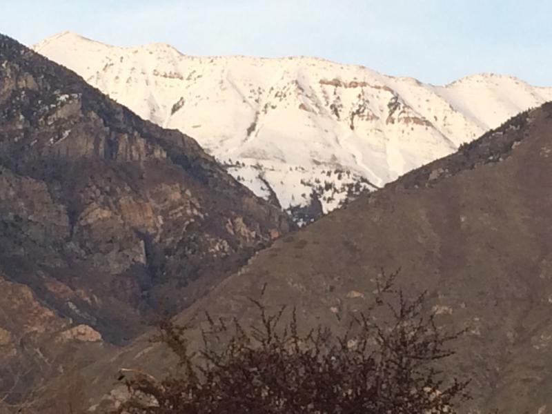 I first saw the larger slide on my way home for lunch today around 12:00. On my way home at 6:00 I saw the other smaller slide. Goes to show you things are heating up in the upper elevations and there are still large deathlike avys taking place. This location is between Corral Mountian and Provo Peak. Left side Started above the cliffband and ran 1500 feet or so. The larger slide looked like it was from the cliffband heating and also ran about 1500 feet.