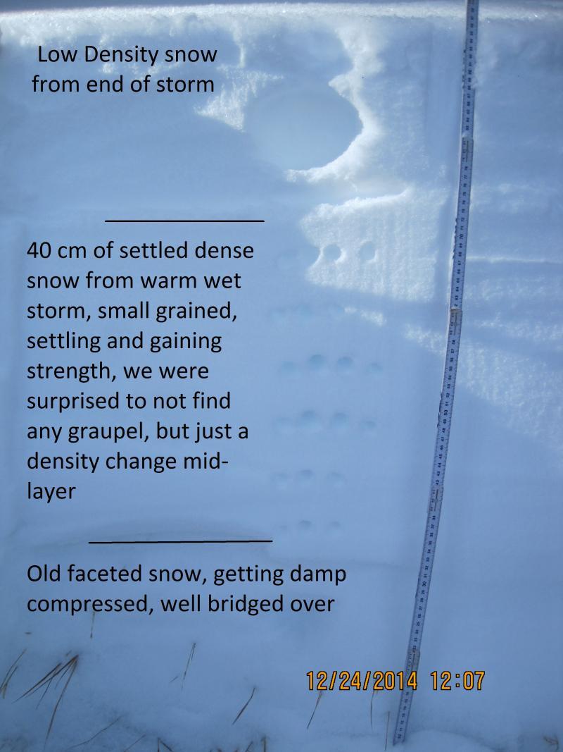 this was three days after slide and pack had adjusted to weight of new snow and part of our ob for Dec 24th