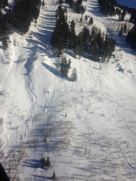 Small 12"x30'x200' soft slab triggered with a ski cut. Very manageable, ran on old melt freeze crust in old snow/new snow interface. Slope had been in the sun for 3+ hours at the time. Only soft slab result with multiple ski cuts all day in the zone.