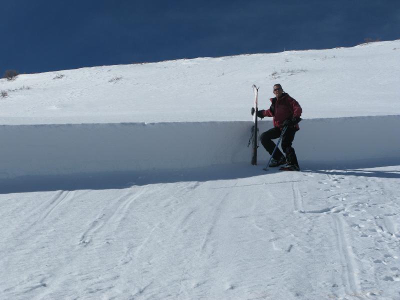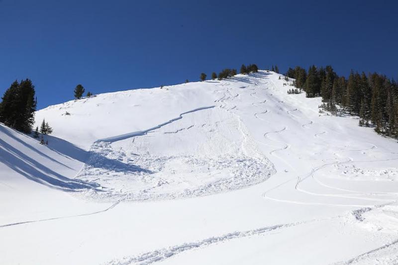 This slope typically loads with west and southwest winds. Friday's winds gusting in the 40's and 50's had no problem forming a dense, cohesive, hard slab which rests on a layer of near surface facets. Third track on the slope triggered the slab, but the rider was able to quickly get off the moving piece of snow. Not a huge slide by Uinta standards, but definitely worth noting the weak snow has come back to life.