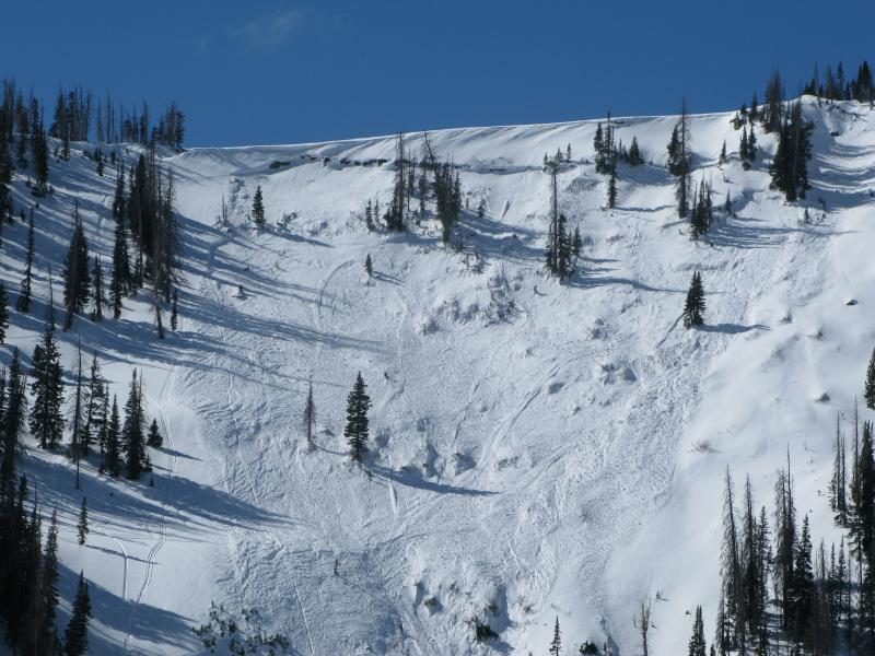 Looked like slides were a couple days old... perhaps triggered Wednesday or early Thursday.. None-the-less, avalanche conditions remain sketchy on the Skyline and the big weekend warm up will most likely keep things on edge, especially in steep, rocky terrain facing the north half of the compass.