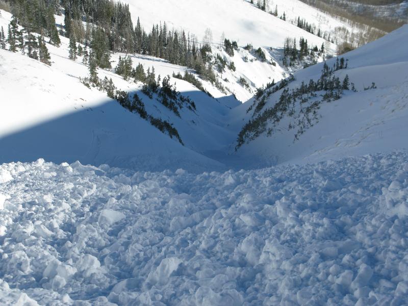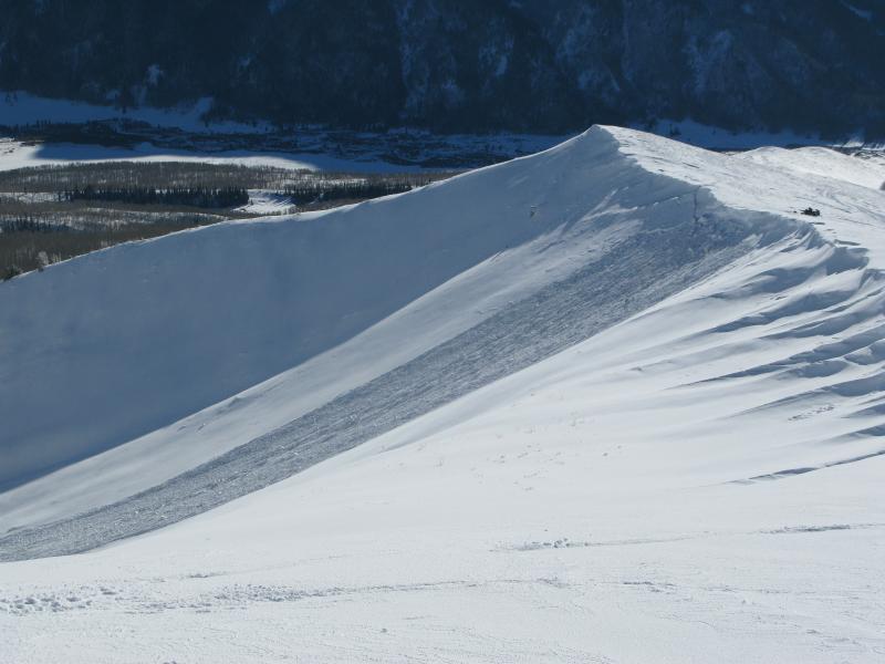 Avalanche triggered remotely from a snowcat working on the other side of the ridge.