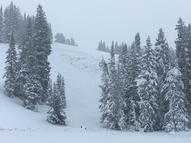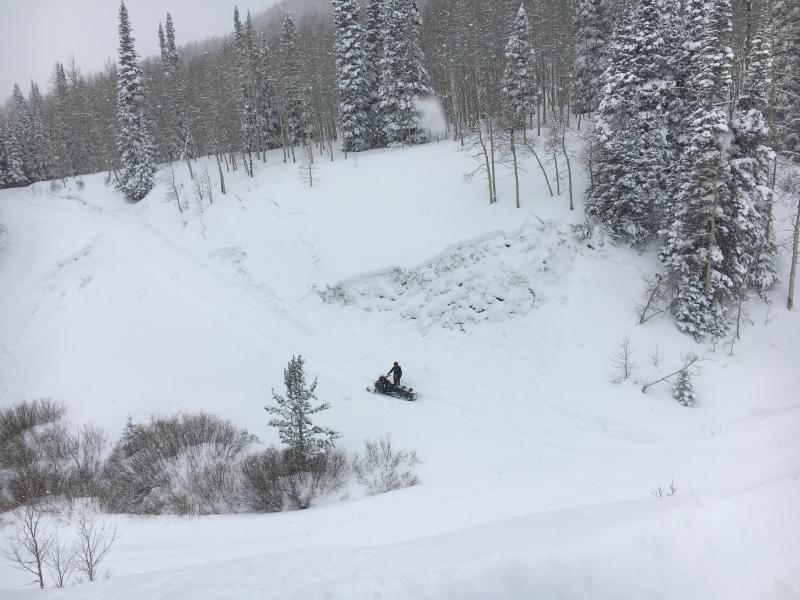 We saw numerous avalanches in Upper Weber Canyon today and the slides were remotely triggered by snowcats working in the area and by Trent and I hiking on the ridges.