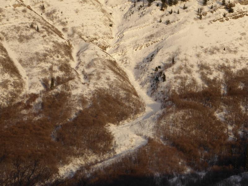 Massive natural avalanche viewed by many people in Utah Valley this morning. This natural avalanche cycle started late Monday night and has produced countless large avalanches into today, Wednesday. There were six adjacent avalanche paths to this one that also released naturally prior to this one releasing.