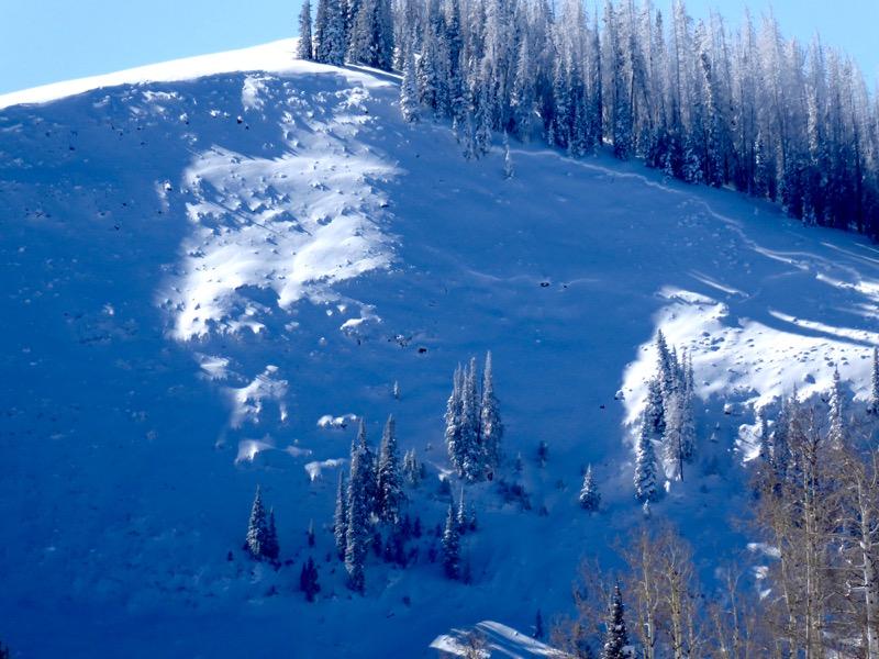 This is one avalanche that occurred during a natural avalanche cycle. Countless other avalanches released during Tuesday, Dec 22 and Wednesday, Dec 23. Most of these are breaking into old weak snow near the ground.
