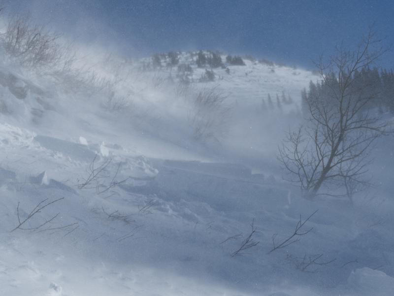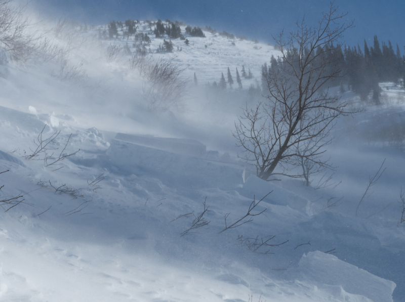 At this point everyone was okay, but the wind was still blowing hard. Three of us retreated to slightly safer ground while another went down to help search for a missing ski. After ten minutes of searching we found nothing and didn't feel comfortable lingering so we retreated minus one ski. One think we noted afterwards was the chaos associated with the slide. While I was ready to dive down and start digging if necessary, the un-caught member of our group didn't know that anyone had taken ride - we would have been wise to take 30 seconds to communicate before taking any action.