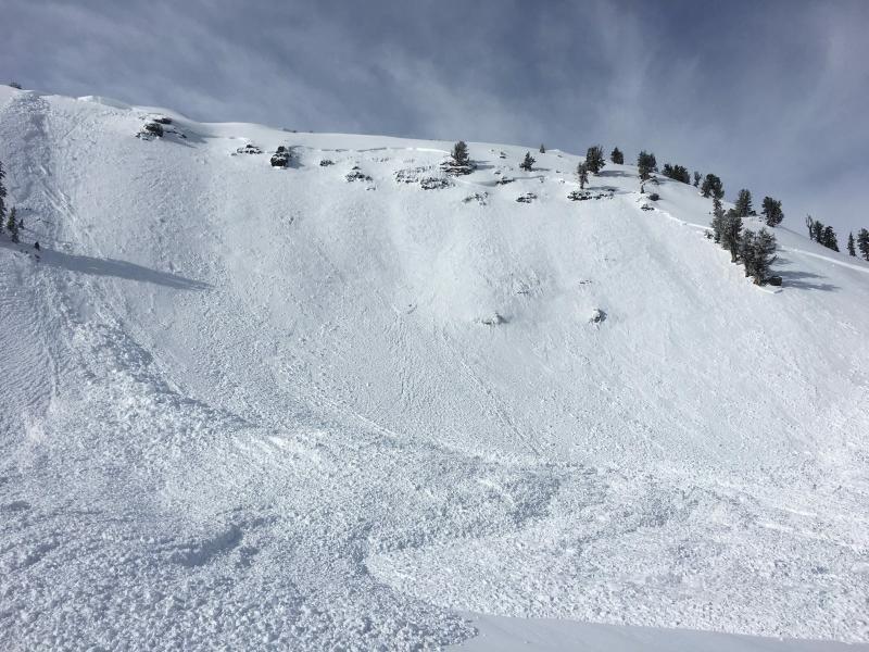 The avalanche was triggered from very low on the slope. Rider escaped using throttle.