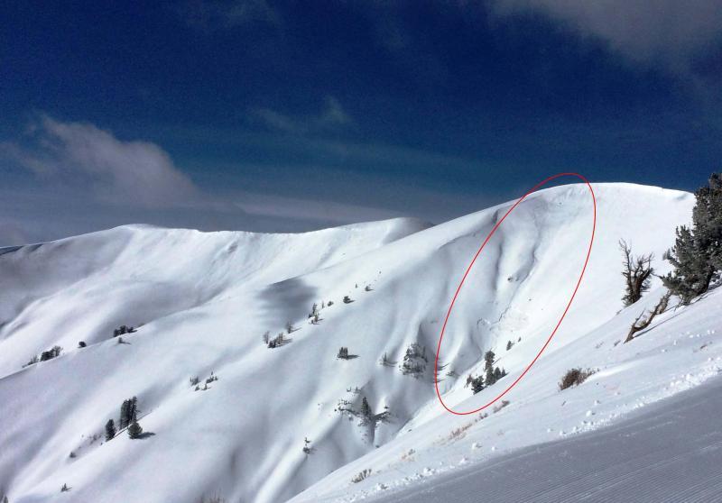 Only a few natural avalanches from the Sat night through Sunday storm. Photo is of the most unique, looks to have started as just a storm slab at the ridge, but debris triggered a hard slab mid slope. Hard slab looked to have failed at the ground, assumed on facets. Unknown if it was a repeater.