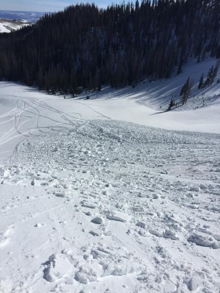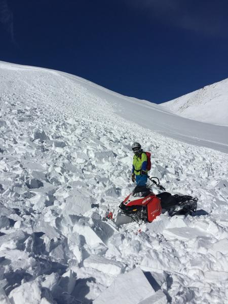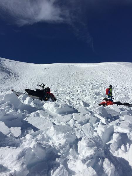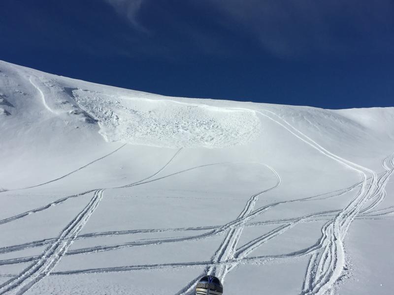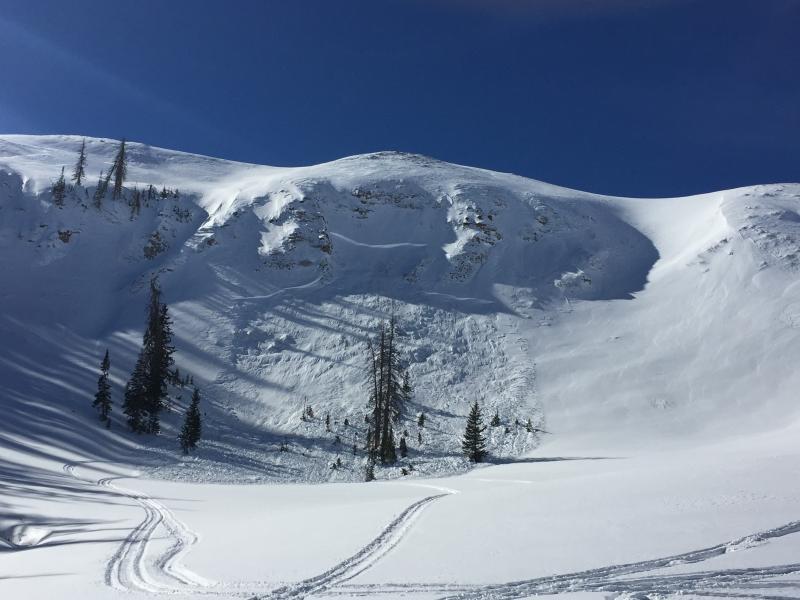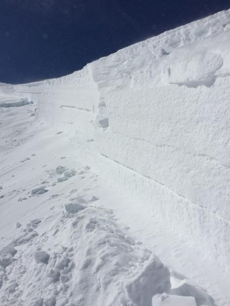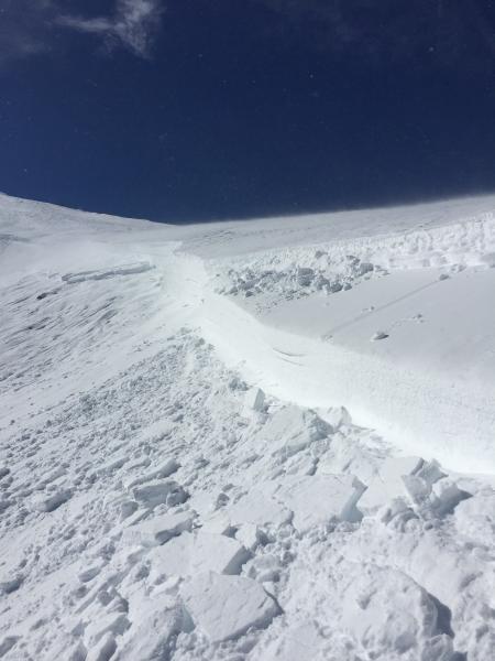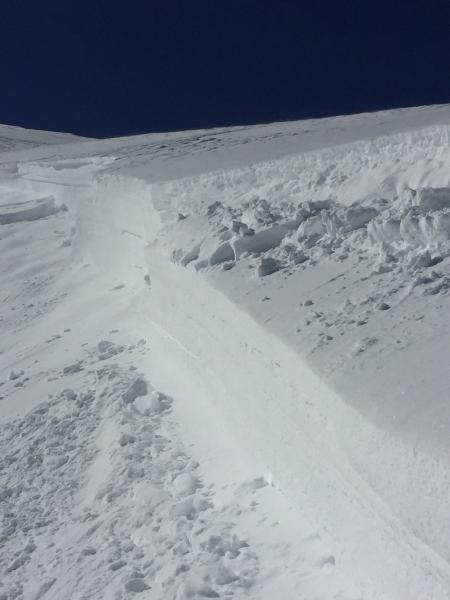 Multiple slides observed today.  We intentionally set off the slide in the race track bowl.  When we arrive we observed part had already slid on the one side.  We intentionally set off the other side.  The middle still has not slid, and there was no way to safely set it off. If someone comes down the middle of it, it will more than likely slide.  Crown was estimated 7-8' at one point.