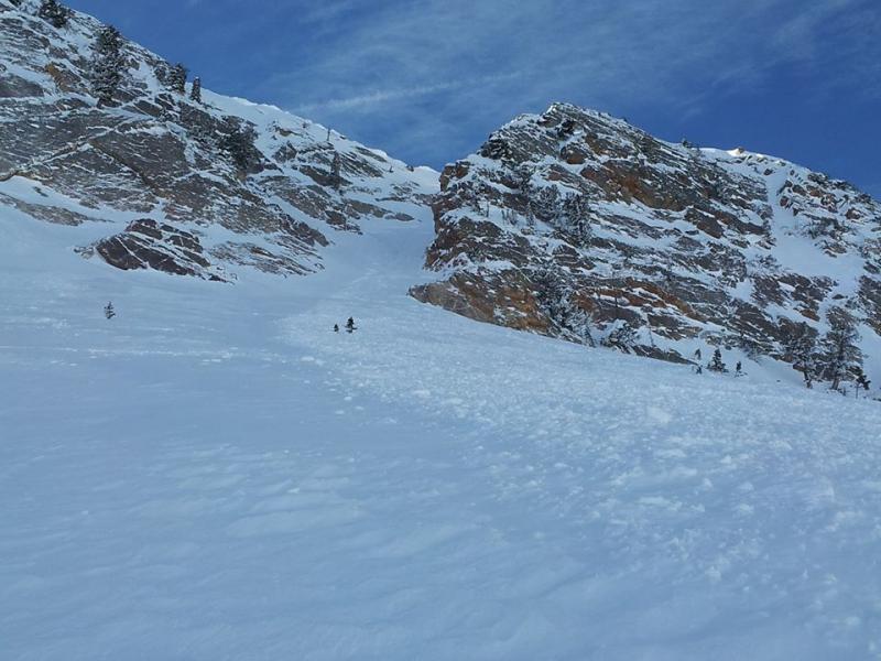 An experienced snowboarder was caught by a small pocket that came out above him in a steep ENE chute, 9300', estimated 8" deep, at least 40 degrees, probably 43. The starting zone about 20 feet wide, propagating to an estimated 50-60 feet wide, and carried him over 300 feet. Luckily it was in an open bowl; he narrowly missed a rock, and was not hurt.