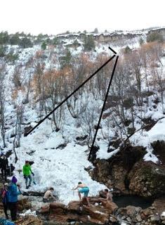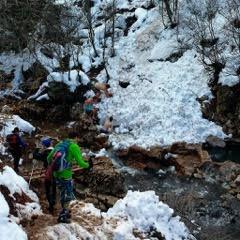 "A buddy in my business class showed me this from Monday afternoon. He was there to dig out three teenage boy’s clothes from the debris. No one was buried. A very close call and a good message to always be prepared and that yes, hiking to the hot springs is avalanche terrain. He claims it was a point release avalanche just under the cliff band. Could be interesting to check out, would love to come along."