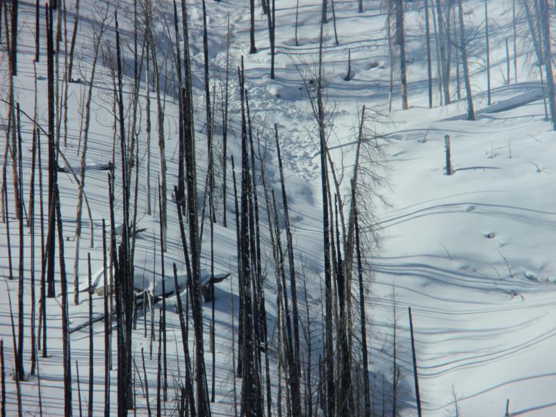 Old avalanche slide from December, just west of first picture, snow slab in slide path was vary dense not a hazard.