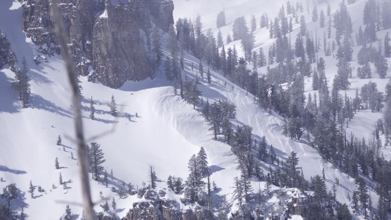We noticed a fair amount of fresh loose wet activity in the buttress area. This wind slab avalanche under the cliffs was triggered by overrunning snow from a natural wet avalanche. The avalanche only involved new snow from 3-22 and overnight accumulations.