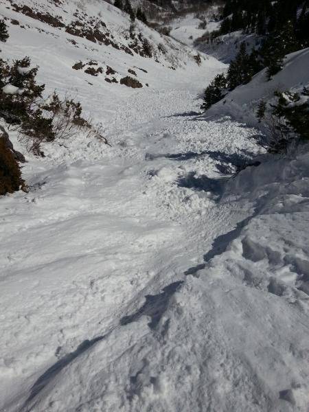 A sizeable wet slide appears to have run yesterday afternoon, in Hells canyon. Not clear if this was skier triggered or natural.