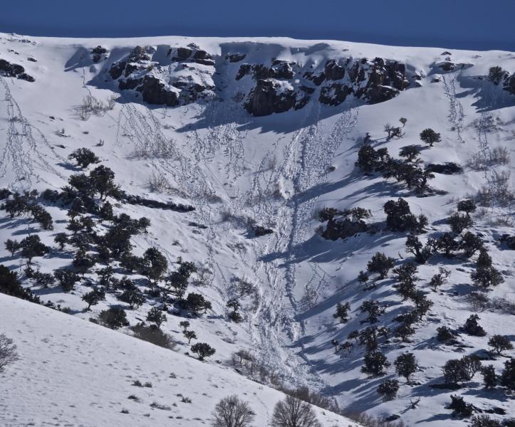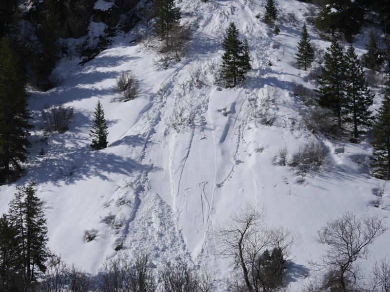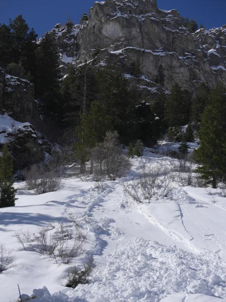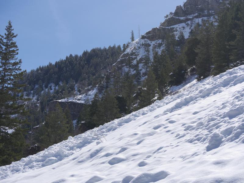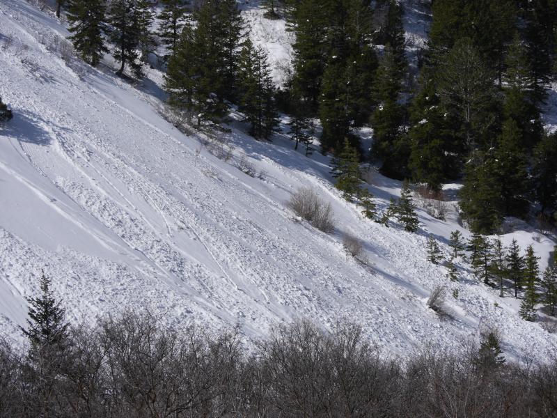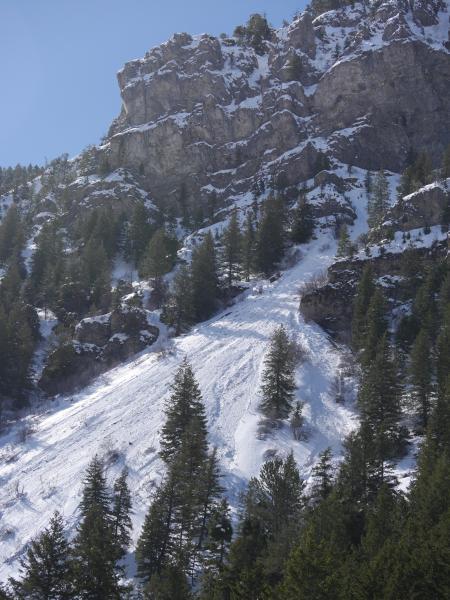 Natural wet avalanches also occurred at higher elevations in sunny terrain... This one high on the north rim of the Canyon.