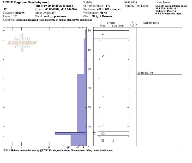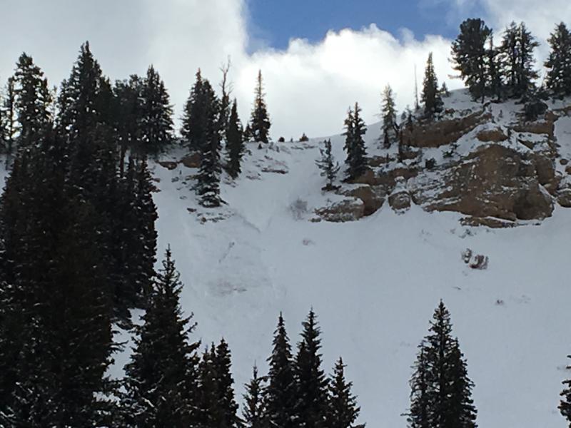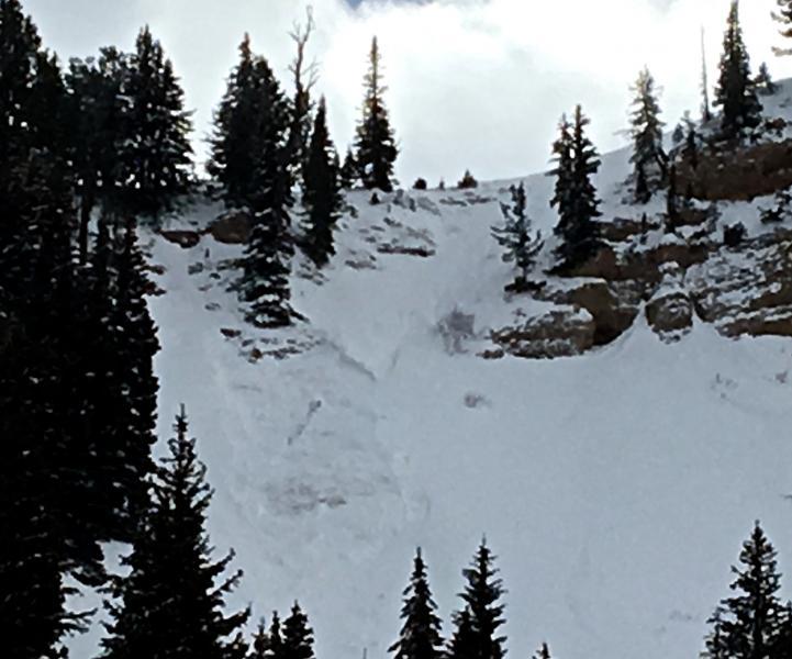 Noticed this natural avalanche in eastern Miller Bowl around noon 11/29/2015. Just a little bit of fresh snow from overnight on debris... The 2' deep avalanche looks to have run on old snow. The avalanche occurred on a drifted slope under the cliffs, with smooth underlying ground and shallow preexisting snow (from before Thanksgiving).