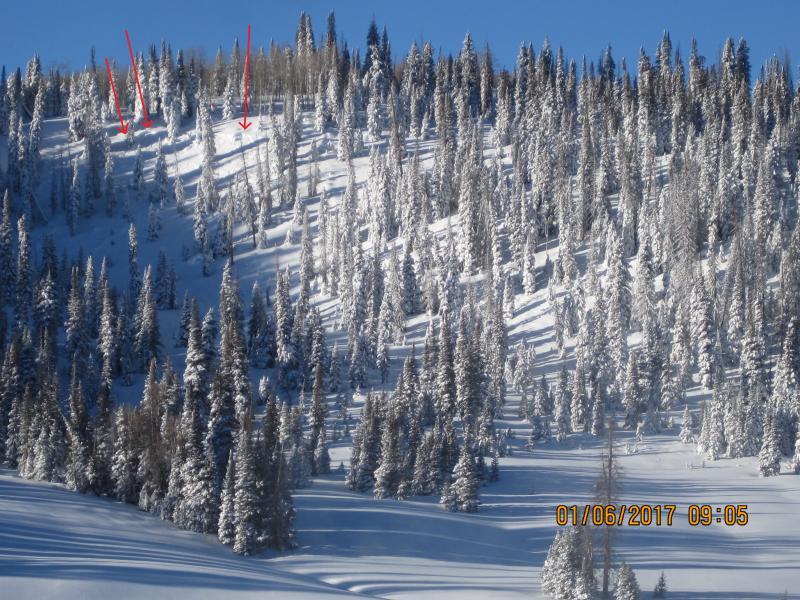 Taking a look closer for weak layer, what we found scary was we were not able to get it to fail on ECT test, yet all it took to trigger this was a basketball sized chuck of snow that rolled over the edge? Slope angle at the crown was 33 degrees, but near 38 degrees at the second breakover, and we wonder if the roller got to the steeper section triggering slide and lower angle got pulled along