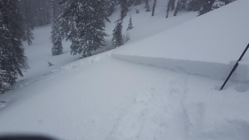 I was able to intentionally trigger two very soft but very touchy storm slabs today on Cutler. I am not exactly sure the recipe but both were identical even though they were 1,500 ft vertically different. Other slopes with similar aspect seemed very stuck.