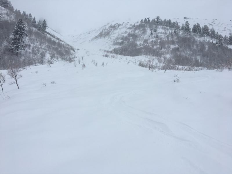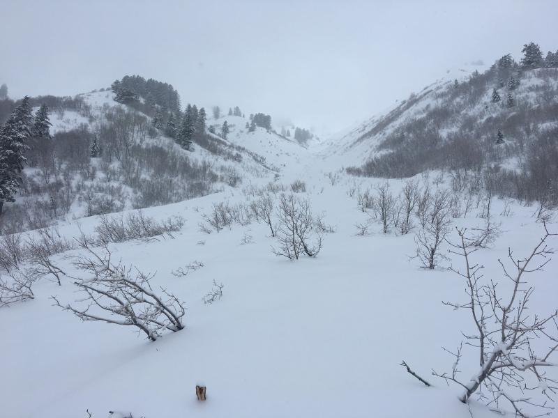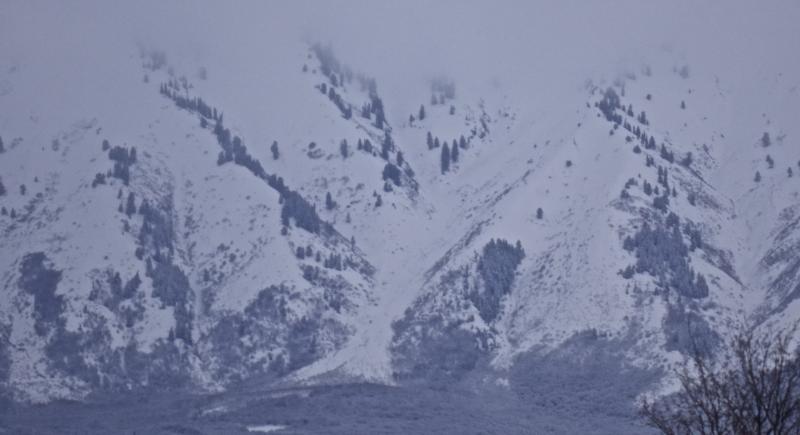 A little clearing this afternoon and debris from a large natural avalanche was visible on Maple Bench coming from Gibson Canyon in the Wellsville Mountain Wilderness above Mendon.
