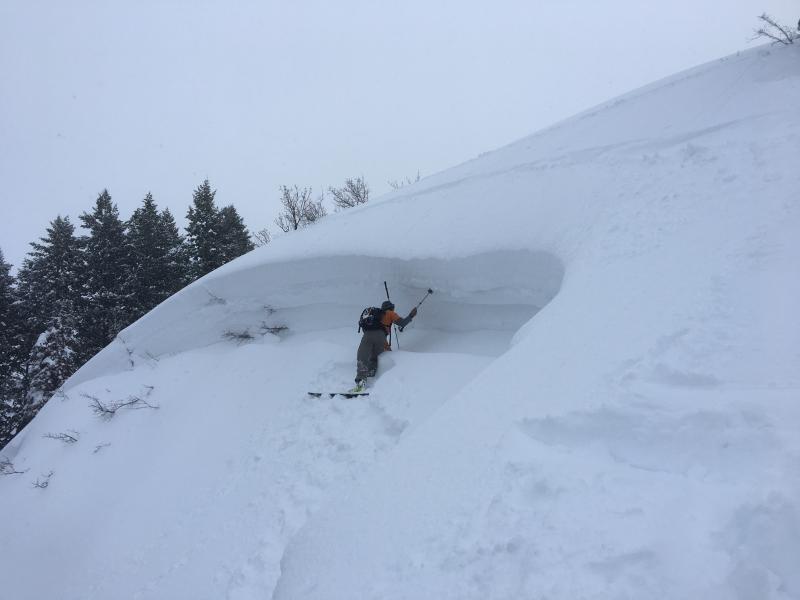 Avalanche cycle on many aspects below roughly 7500'...conservatively 7800' stepping down to Dec 15/16 rain crust. Crown depths ranged from 2.5-6' deep in heavily wind loaded areas with average at 3-3.5' deep. Aspects seemed to be more pronounced N>E>SE...with others likely as well.