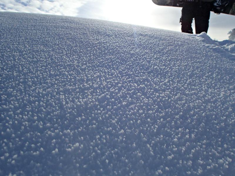 We found surprisingly stable conditions where we rode today. We stayed on mostly east facing slopes between 8600 and 6500 feet. We did not notice any collapsing or cracking of any kind. There is a significant layer of rime on the ridgelines and surface hoar is grow in many areas. We tested several steeper slopes by dropping 15-20 foot cliffs onto the slopes with no results.