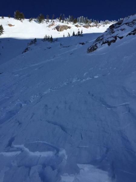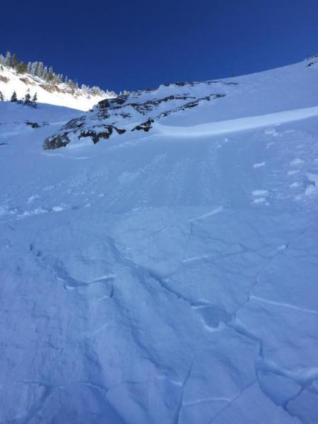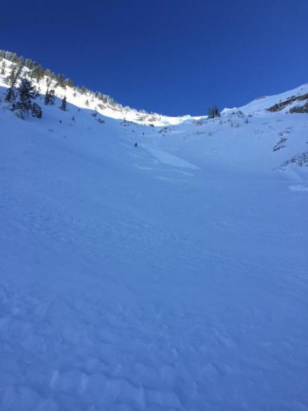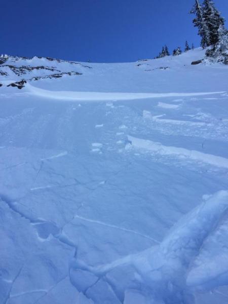 on a firm base. Snow became more wind effected mid slope and a bit punchy. Where the slide occurred a dense wind slab was