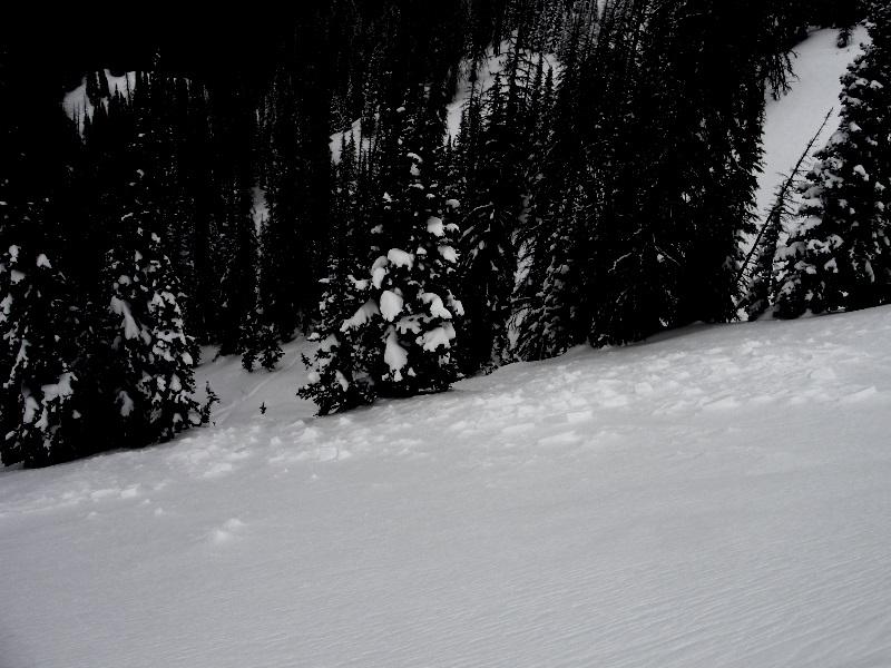 This slide occurred while I was doing some tree laps in the area. There was a visible crown below the cornice however I did not take the photo until about an hour later and by that time the crown was already covered up.