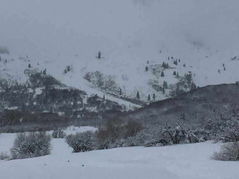 I saw this slide's run out below Chilly Peak. Starting zone not visible it may have run 2500 vertical feet.