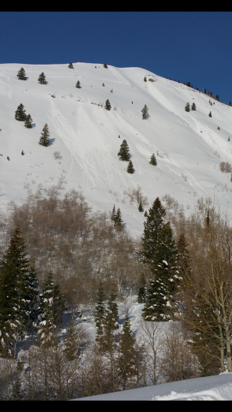 Sunday early afternoon we observed a few recent wet sluff avalanches. Monday morning we observed double the amount of recent avalanches. Many were point release. The biggest looks like it may have been a ski cut, but that could have been the crown of a slab. A lot of roller balls today. The surrounding area near UFO bowl looked similar. The E SE and S aspects snow was too sketchy to skin or ski on. Found safer snow in shaded areas and trees.