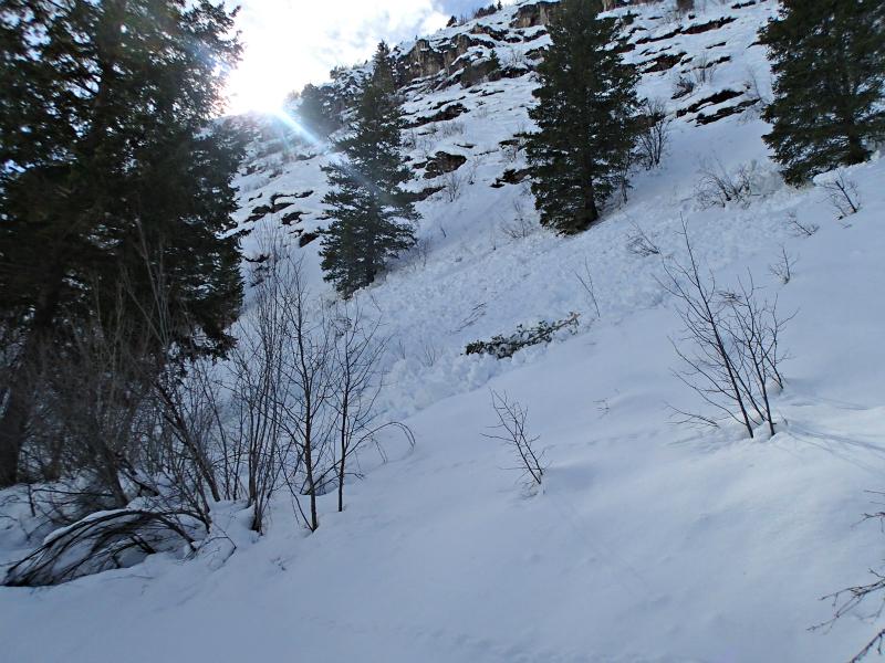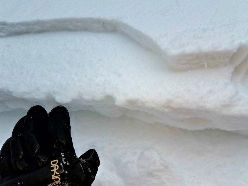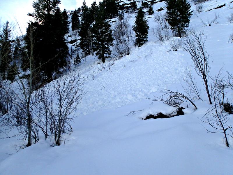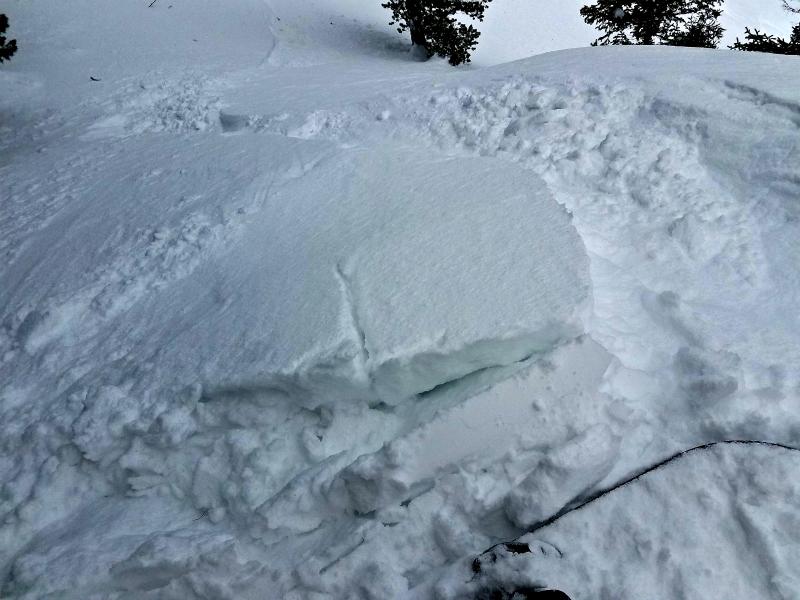 We did not find any significant signs of avalanches anywhere we rode. We tested many slopes on all aspects on the northern half of the compass and only had one small 6 foot pocket pull out on a 45 degree west facing wind loaded slope around 8200. The 10 inch slab only traveled a short distance and stopped without propagating onto other slopes.
