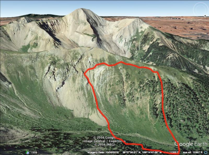 Typical large avalanche for Horse Creek with heavy snowfall and strong SW winds. Mountains received 40" of snow and 3.5 - 4" of water during the storm cycle of Jan 20-23. Winds averaged 30-40 mph with gusts to 70. Old Reliable!