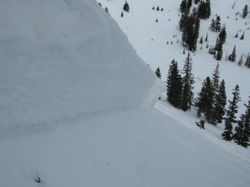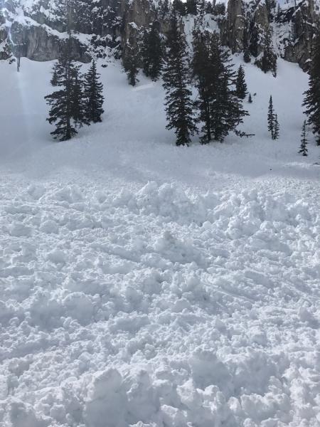 We were pressed for time so didn't inspect the crowns but it looked to be about 4 feet deep and was likely a slow mover judging by the debris and length of track. Maybe 8-10 foot deep debris pile. I would assume it failed on the old rain crust.