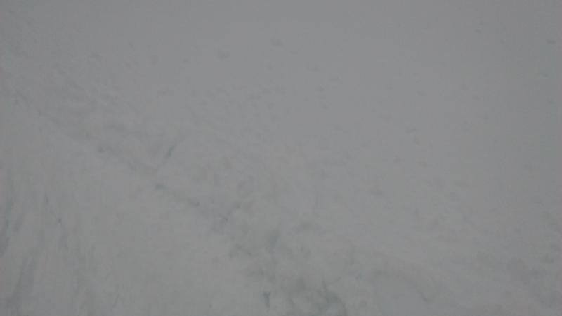 8-10" of new heavy, dense snow this evening. Skied well, surfed on top. Halfway down the steep roll-over on Dogleg, I unintentionally triggered a small wet slide. About 3 ski widths wide. Stopped about 50 vertical feet above where the chute flattens out. Only noticed it when I stopped a bit lower down and looked back up. Also intentionally triggered a similar sized wet slide a bit lower down on dogleg on the steep portion below the road. Ski cut this one and it went 50 feet down or so. Snowing most of the evening, wet, often heavy, very poor visibility, can't even see the slide in the photo from 200 feet away.