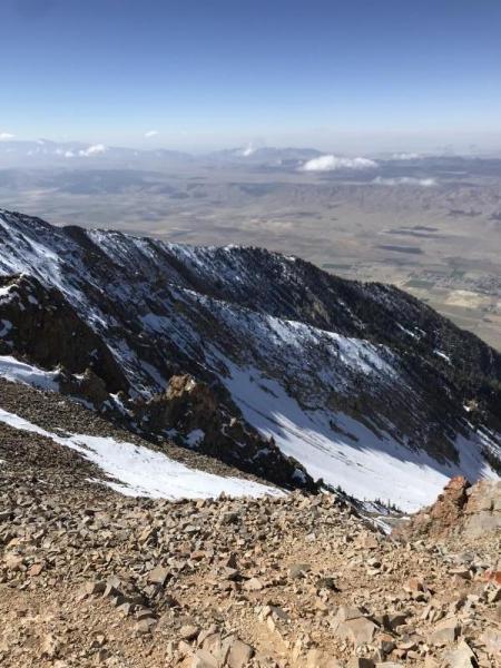 This weekend we decided to do a fall hike up to Mt. Nebo. I was curious to see some fall colors and observe how much snow was remaining at the highest elevations. As we approached the summit ridge, we found 6” of snow on the northerly aspects with more in places with wind loading. We observed 4 natural or animal triggered slides, with large debris piles 1500’ below the starting zones. We weren’t able to get close to the crowns but I would imagine they were failing on depth hoar. Wind was causing rapid loading, so I imagine there are more suspect layers up high. Clouds moved in so we were not able to get very good images. The bottom line is: The upper elevation, north facing snow is deep and widespread, it’s very unlikely that it will melt anytime soon, and I would imagine it’s going to haunt us as a weak layer for weeks and months to come. I’m going to be paying close attention to where the snow is remaining before it snows again, and I will be taking detailed photos for future reference.