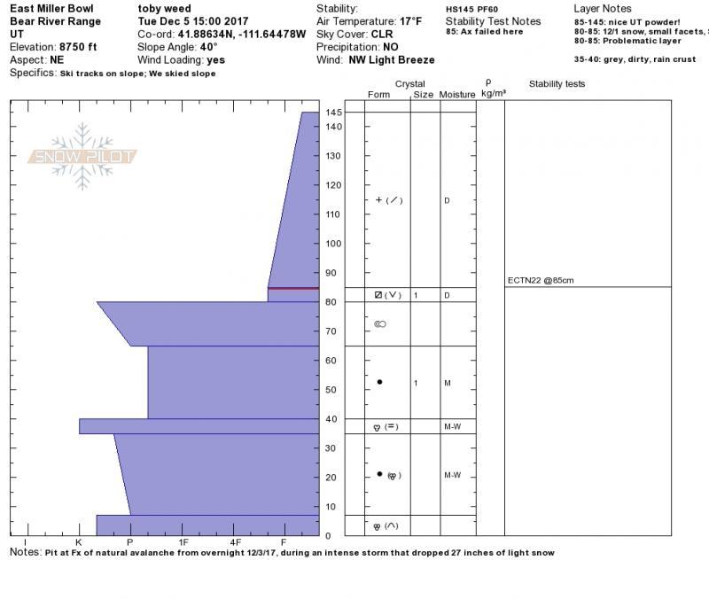 Could not get accurate CT or ECT results due to proximity of avalanche....(ECTN 22 at crown)