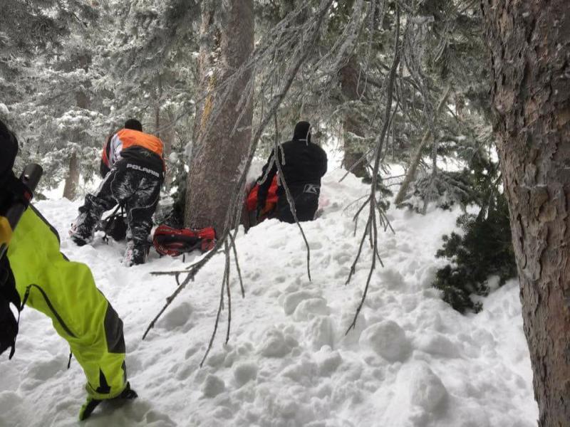 Two cousins, experienced riders in a family party, were sidehilling through the forest in lower Boss Canyon. They felt the trees would offer some degree of safety from the known avalanche danger. When they triggered the persistent slab avalanche, both riders were caught, but one was able to ride clear of the flank of the avalanche. The other was caught and carried through the trees. When he was caught, the 20-year-old rider immediately deployed his avalanche airbag and held tightly on to his sled as he was swept downhill into a large tree, his ankle pinned between his sled and the tree. The heavily damaged snowmobile was deeply buried and the rider mostly buried, with just part of his head and airbag sticking visible. It took a long time and lots of digging for the party to get both the rider and his sled extracted. After about 45 minutes of digging, the slightly injured and very lucky rider was freed, and the party was able to get the damaged sled out of the backcountry and to the Franklin Basin trailhead.