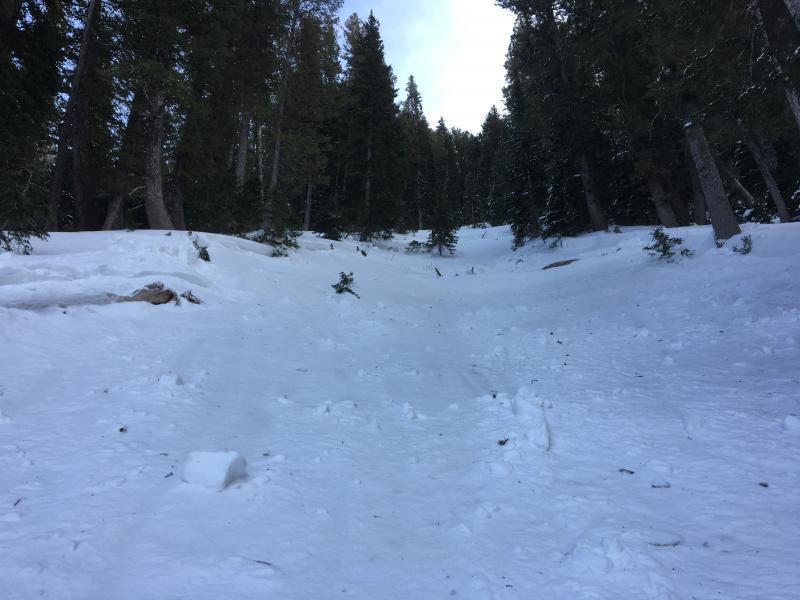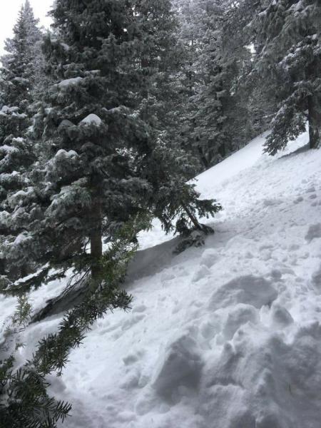 The avalanche occurred on treed north facing slope in mid-Boss Canyon at around 8500' in elevation. The riders were under the impression that avalanche conditions would be safer in the trees than on open slopes.