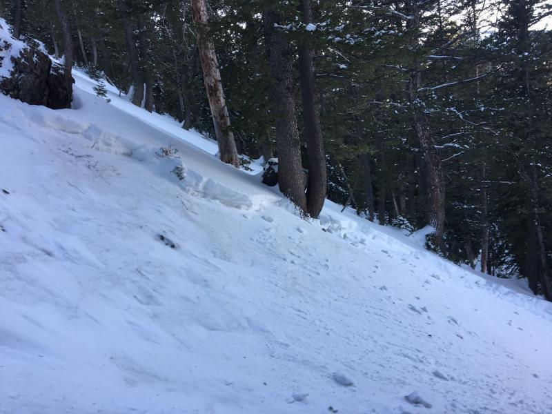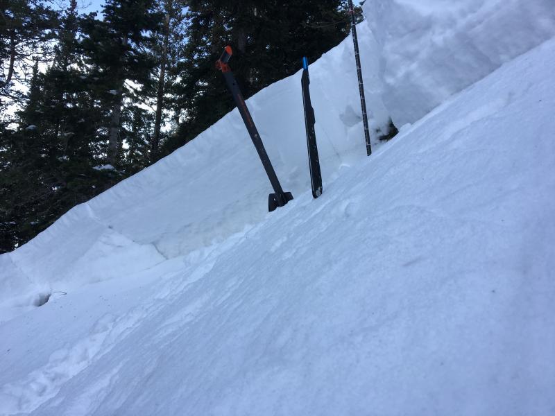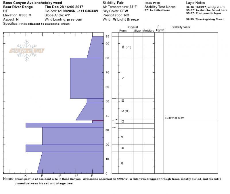 Two moist storms ending on Christmas Day deposited 25" of snow and almost 4" SWE as measured by the Tony Grove Snotel, about 5 miles to the south of the avalanche site. Constant westerly winds battered the northern Bear River Range during this time, and a slab was formed on weak faceted snow from the 3-week-long December high pressure system.