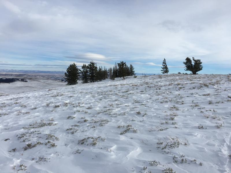 Notable winds averaged 20 mph and gusted to 30 mph from the SW and NW on Dec 24th. These wind speeds were recorded on James Peak which is 18 miles to the WSW. However, this slope has a large flat area above it that allows any westerly wind to load it with wind drifted snow. See photo below of the terrain just above Whiskey Hill.