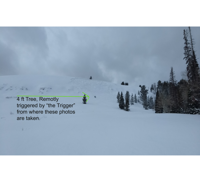 We remotely triggered this avalanche today while looking at a natural avalanche to the far lookers right (north) side of beer hill. Felt the collapse by "the Trigger" and watched it come down. Sorry I could not get my phone into video mode so I clipped together some photos. We triggered this from where the photos were taken maybe 150 yards away. We then watched people ride to the lookers left of the slide with no affect. Spacial variability man!