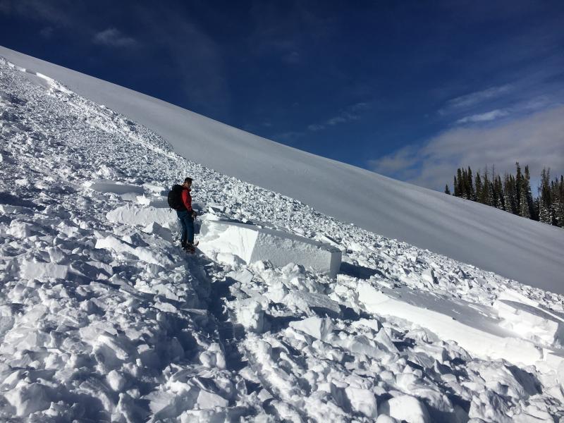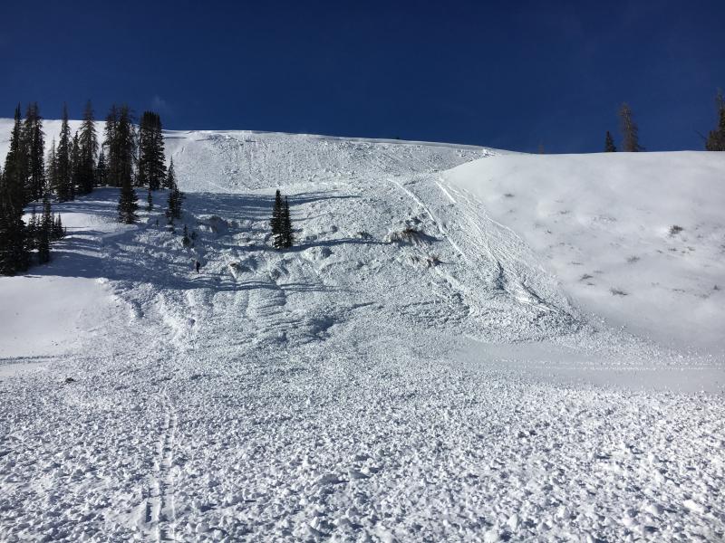 We rolled up to this slide minutes after it occurred. Triggered low on an adjacent slope, this avalanche failed on facets above the Thanksgiving rain/heat crust.
